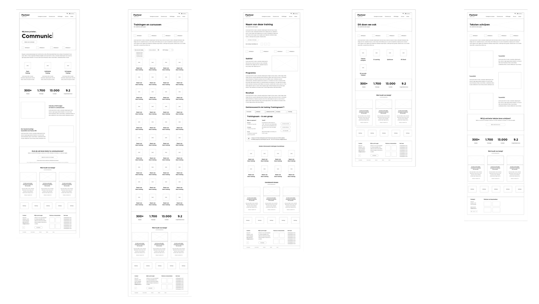 Om de bezoeker aan de hand te nemen naar een doel gaan we de indeling van iedere pagina bepalen. We richten ons hierbij op de vier verschillende soorten bezoekers binnen de Myers Briggs Type Indicators: de competitieve, spontane, methodische en humanistische bezoeker. Ieder met zijn eigen behoefte en manier van communiceren. Op basis van deze profielen, zal iedere pagina binnen de website worden ingedeeld en krijgen alle elementen van logo tot call-to-actions, een weloverwogen, strategische plek, uitgewerkt in wireframes.